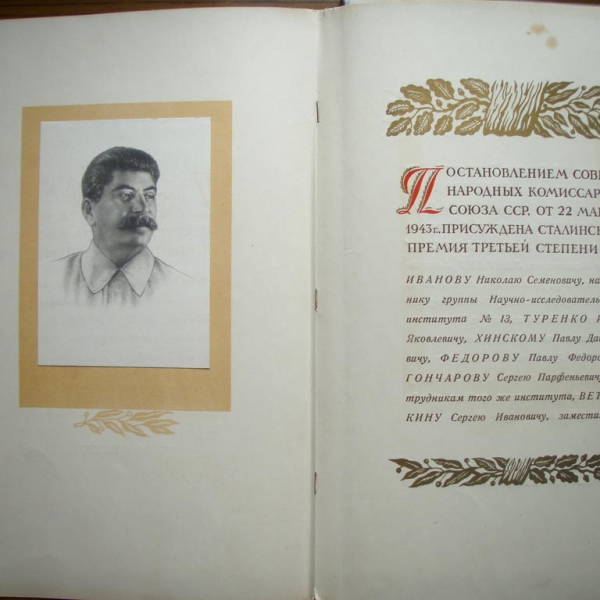 21 апреля 1941 года были объявлены первые лауреаты Сталинской премии. Это была «форма поощрения граждан СССР за выдающиеся творческие достижения в области науки и техники, военного дела, литературы и искусства, кардинальные усовершенствования методов работы производства».