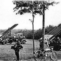 Установленные на грузовиках Форд Мармон (ленд-лиз) ракетные установки Катюша, 1944 год