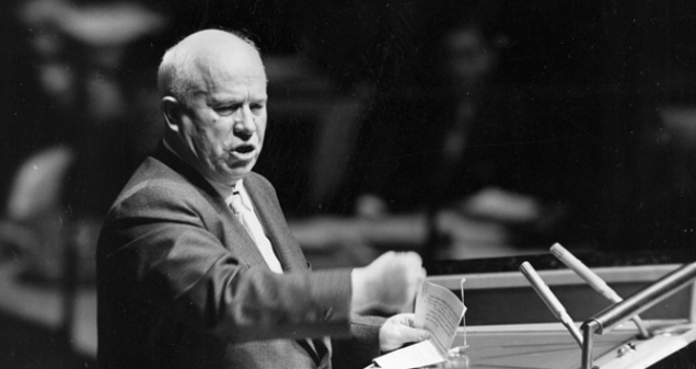 На ассамблее ООН 1960 года. Хрущев без ботинка в руке.