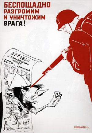 Идеологическая агитация во время ВОВ мало была нужна. Советские граждане, все, как один поднялись на защиту своей любимой родины. Исключения, конечно тоже случались, но их было мало по сравнению каждодневными подвигами и на войне, и в тылу.Так воспитаны были наши люди. Но для поддержания боевого духа, отчасти важна и культурная подоплека. Художники, музыканты, поэты создавали в те годы воистину патриотические произведения. Спец бригады артистов, музыкантов ездили по фронтам, дабы поддержать бойцов - это был их вклад в Великую Победу. Песня Лебедева - Кумача "Священная Война" была одним из орудий, разивших противника. Настолько она поднимала боевой дух нашей армии.