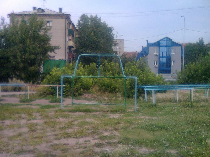 Если включить воображение, можно увидеть, что это танк( в середине). У нас в школьном дворе была подобная установка. И некоторые уроки напоминали съемки фильма о войне. Точнее ее репетицию.