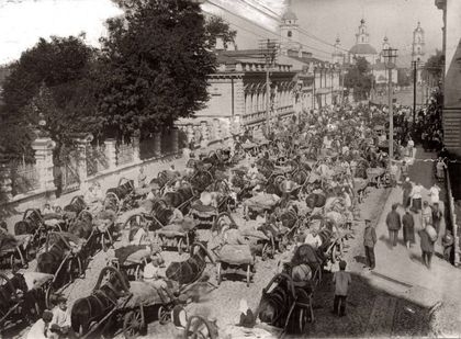 Наверное о том, что клиенты платят мало, что еще нужно потомственному извозу - завысить таксу - и он король! Или стали мешать трамваи, их кольца в Москве постепенно разрастались и мешали парковке гужевого транспорта.