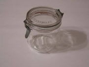 Банка с крышкой на замке. Времен СССР. Импортная. Банка - стекло, замок - металл. Высота 12 см, диаметр 10,5 см. Есть небольшой скол на горлышке.
