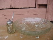 Продаю вазу на ножках , стекло в хорошем состоянии , плюс посуду для горчицы с ложечкой , за все 250р.