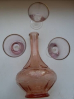ГРАФИН С РЮМКАМИ 3 ШТ. СТЕКЛО РОЗОВОГО ЦВЕТА КУПЛЕН В СССР ВОЗМОЖНА ВСТРЕЧА В ДРУГОМ МЕСТЕ